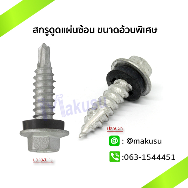 สกรูจะมีขนาดอ้วนใช้ ยิงแผ่นครอบ หรือ แฟลชซิ่ง เข้ากับแผ่นหลังคา ใช้สกรูยิงแฟลชซิ่ง ในการช่วยยึดสองแผ่นให้ติดกัน