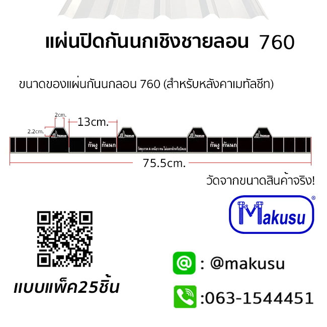 หยิบลงตะกร้า | แผ่นปิดกันนกเชิงชาย ลอน 760 แบบเเพ็ค มีทั้งหมด 25 ชิ้น ![]()